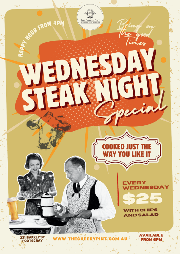 With regular menu changes to keep you on your toes, and daily specials to keep you coming back for more – there’s something for everyone so join us at The Cheeky Pint for Pot & Parmas on Tuesdays, Steak Night on Wednesdays, Burgers & Curry on Thursday & Bottomless on Saturdays.